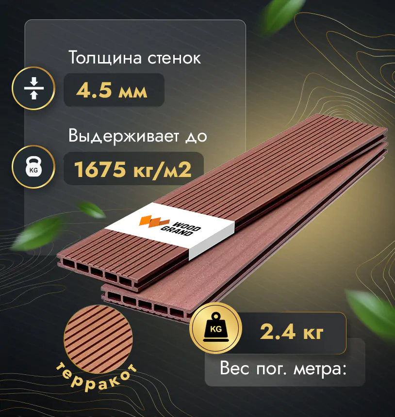 Конечно, террасная доска, цена которой невысока, пользуется огромным спросом. В каталоге представлена также продукция для коммерческого использования с повышенными прочностными характеристиками. Поэтому наша террасная доска, купить недорого которую можно как для домашних патио или для летних кафе с высокой проходимостью.