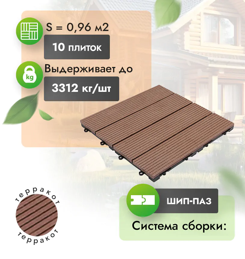 Срок службы садового паркета и изделий из ДПК не менее 15 лет. В течение 3 лет гарантия: вернем деньги или заменим товар.